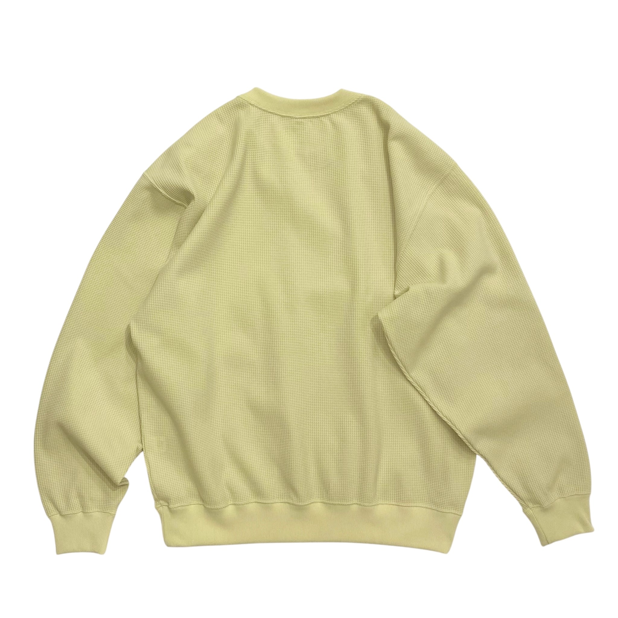 組織の中に伸縮性のあるポリエステルが組み込まれた独特の反発感を持つワッフル素材を使用したクルースウェット。紫外線防止・透温性にもすぐれ、デイリーにもスポーツにも対応可能な アクティブなアイテム。