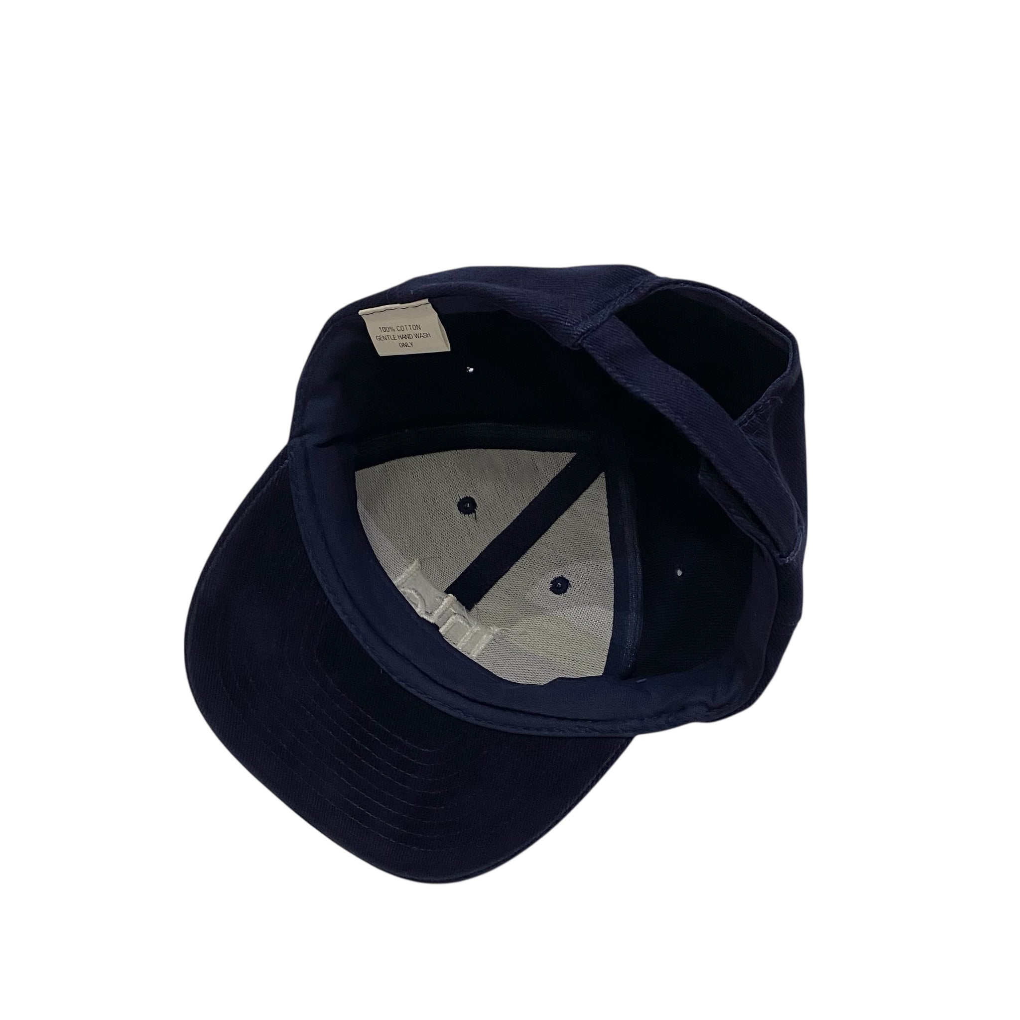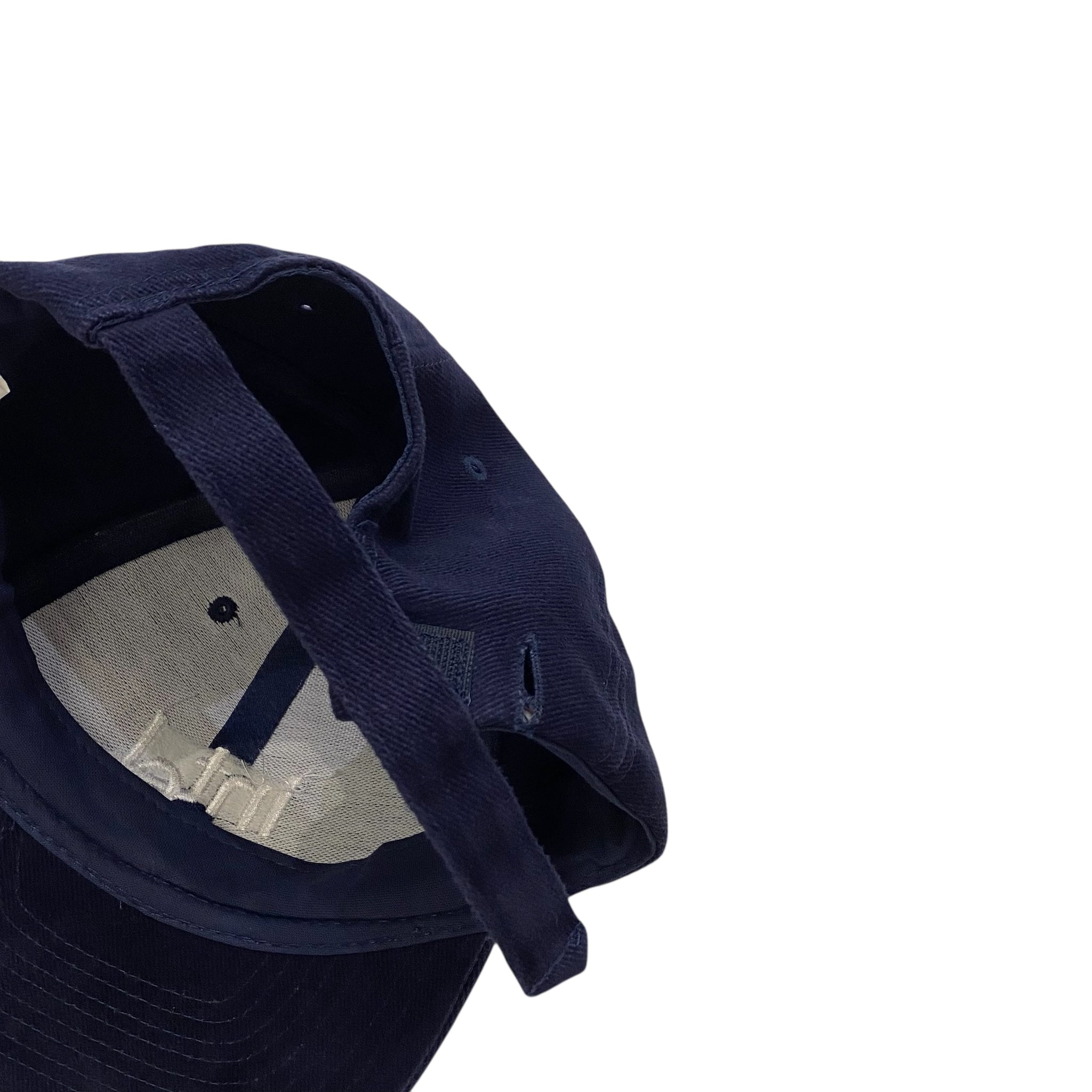 ネイビーカラーの6パネルキャップ。
