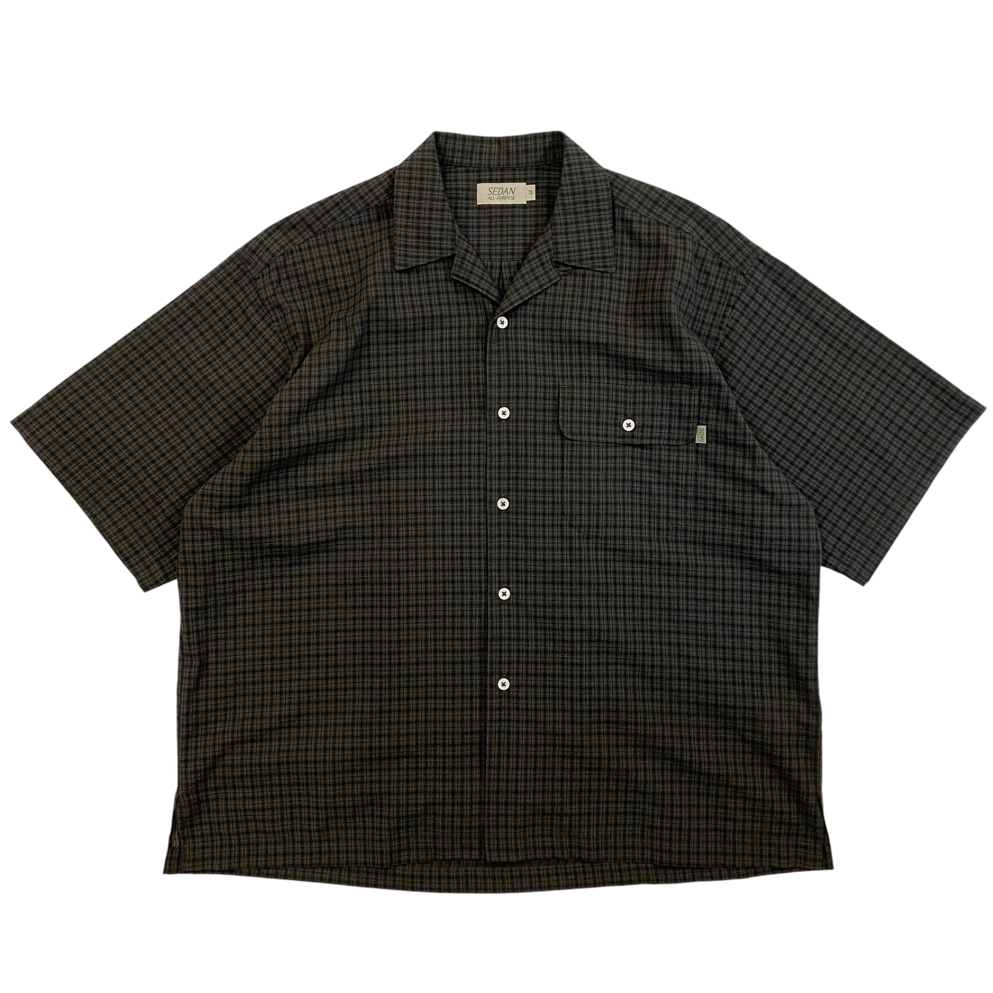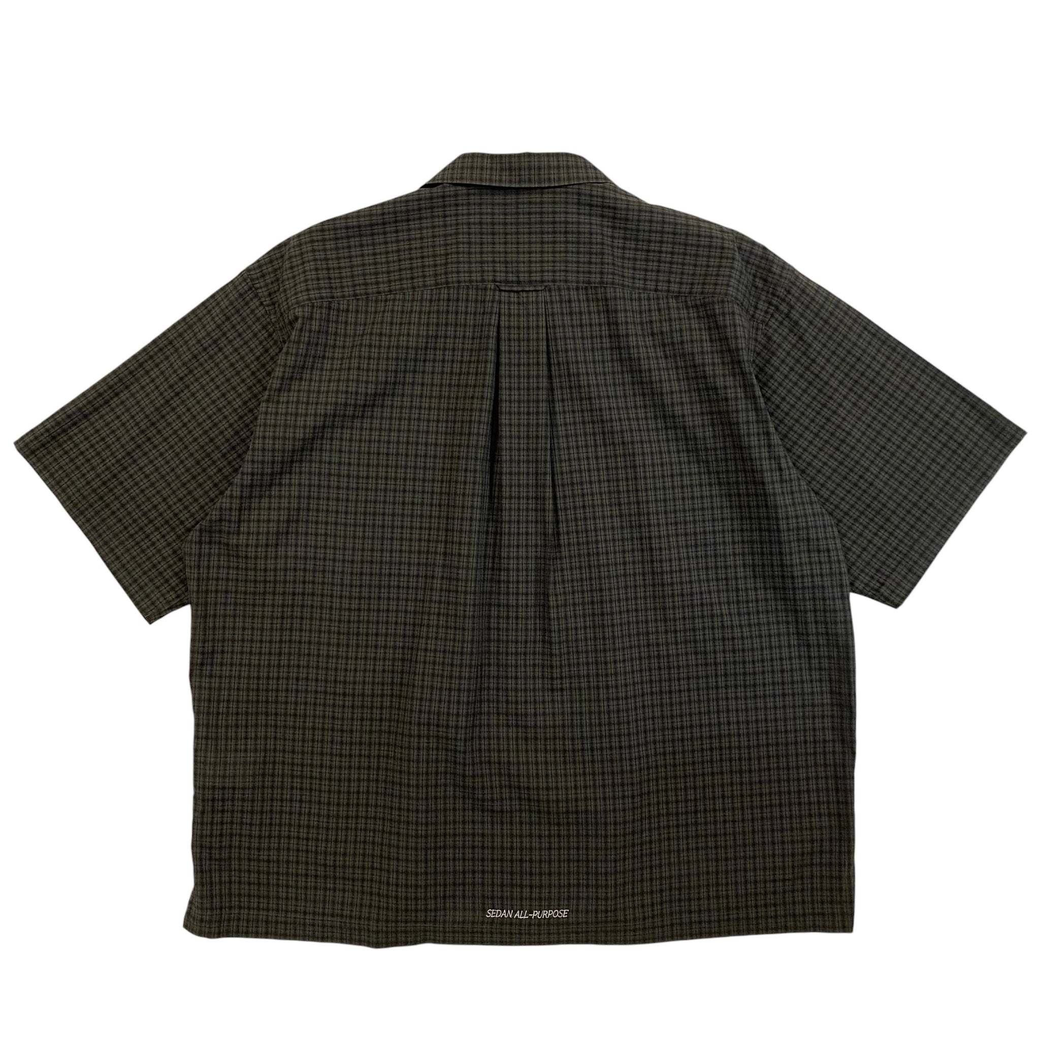 DOBBY PLAID OPEN COLLAR S/S SHIRT / OLIVE × BROWN