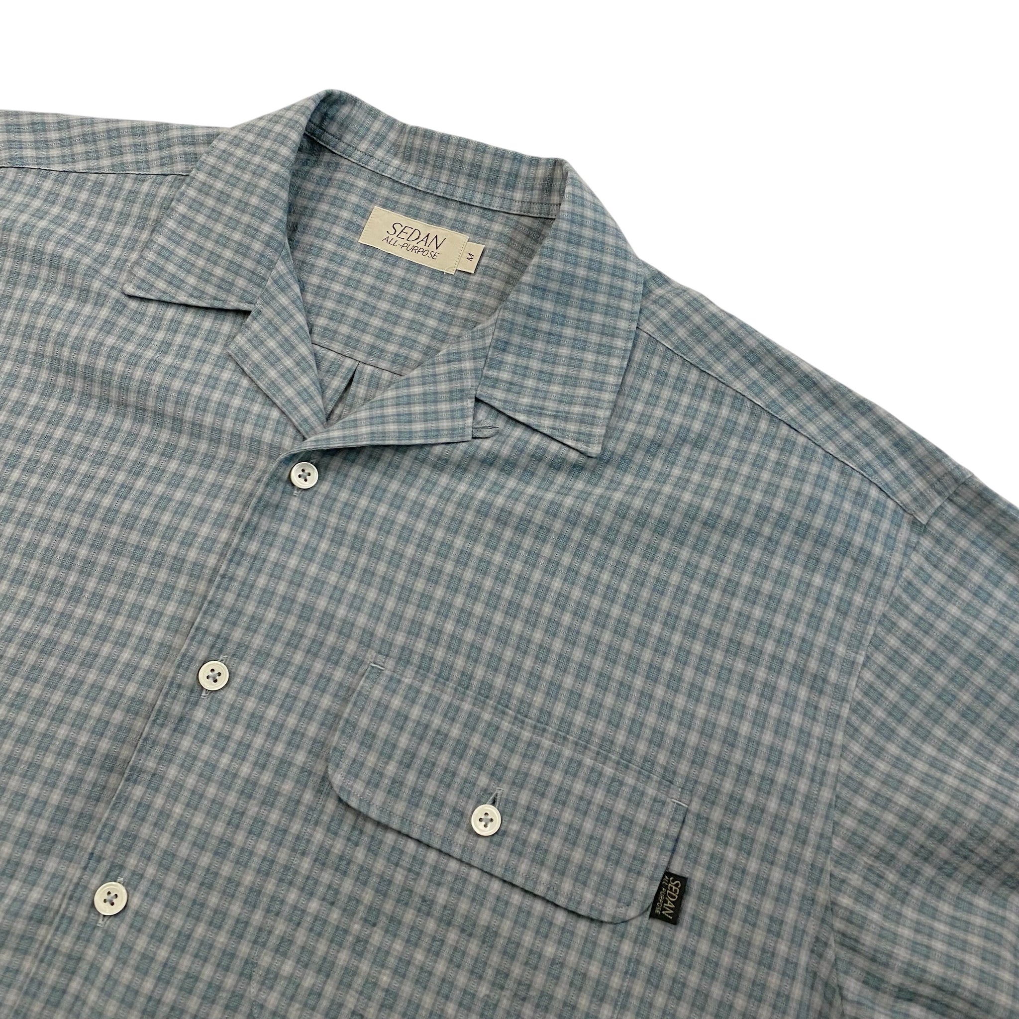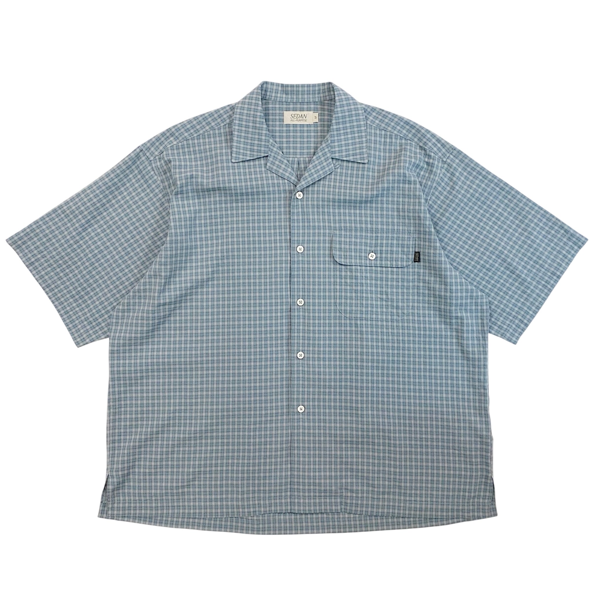 DOBBY PLAID OPEN COLLAR S/S SHIRT / SLATE × GREY
