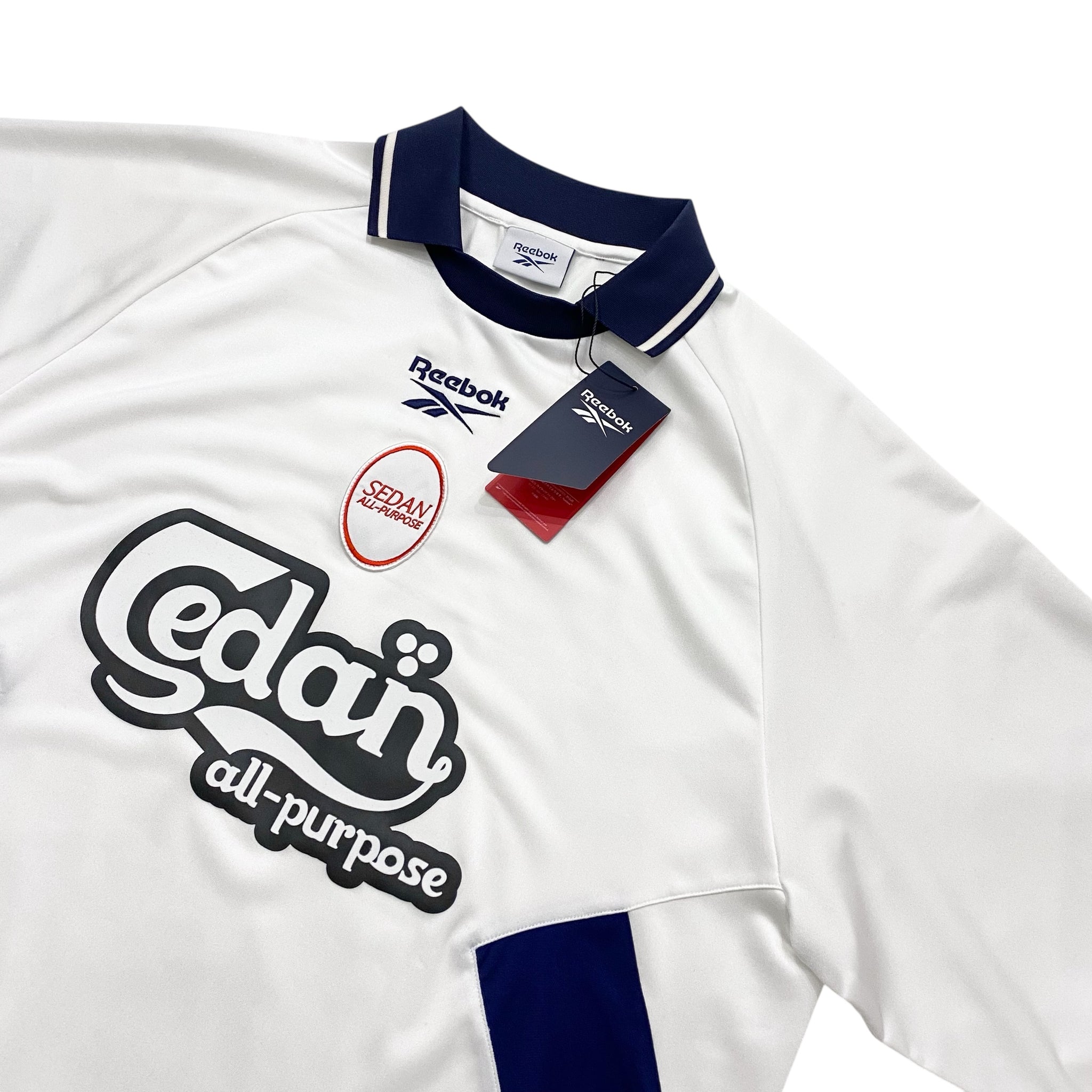 英国発の世界的スポーツブランドであるReebok。古くからスポーツチームへのスポンサード活動や革新的な広告でも知られています。そんなReebokとSEDAN ALL-PURPOSEのカプセルコレクション。SEDANではお馴染みのゲームシャツですが、珍しいロングスリーブや胸のフロッキープリントや刺繍ワッペンなど豪華な仕様となっています。またドレープ感のある生地を使用しているので、ジャケットのインナーにしていただくのもおすすめのコーディネートです。英国を感じるカラーリングにも注目です。