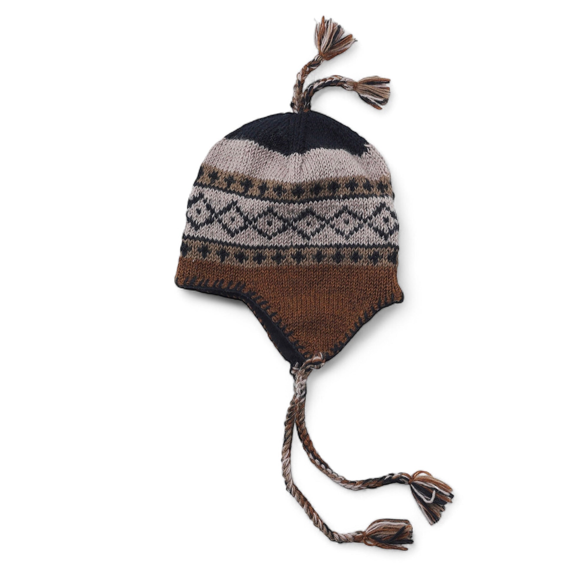 ネパールで手編みして作ってもらった耳当て付きのニットキャップ。