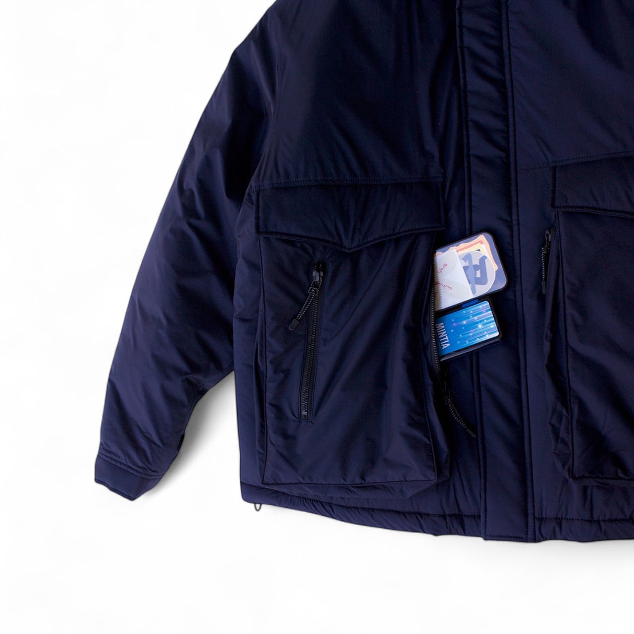 ポケットの内側(身頃の中心側)にもファスナーをつけて、スムーズに取り出しができるようになっています。