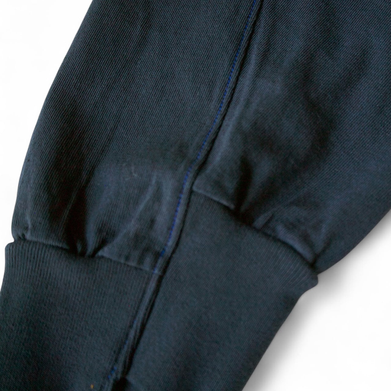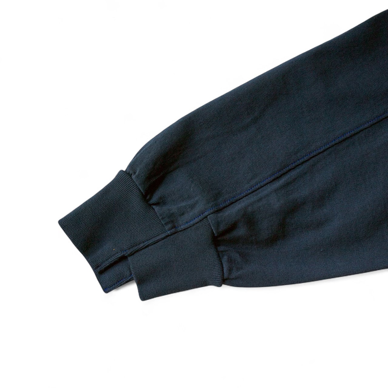 袖の切り替え部分と左胸ポケットのステッチは配色ステッチで、