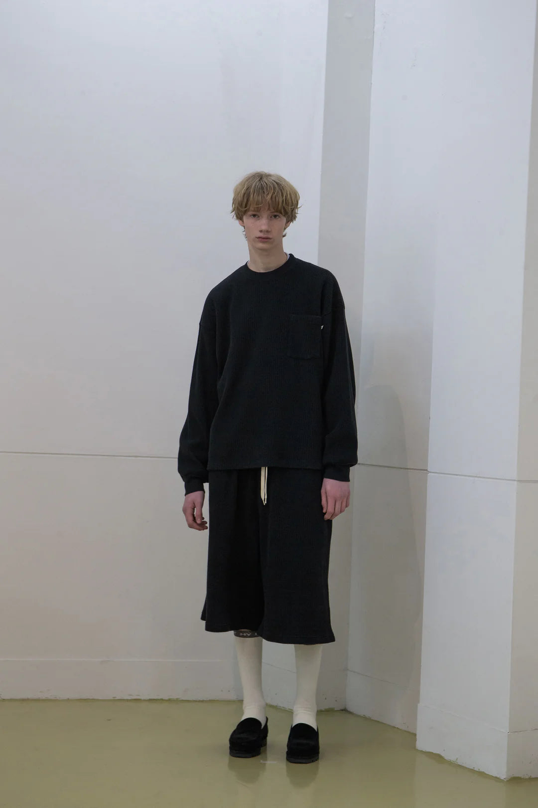 度詰ワッフルを使用したロングスリーブTシャツ。